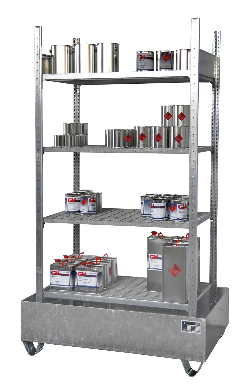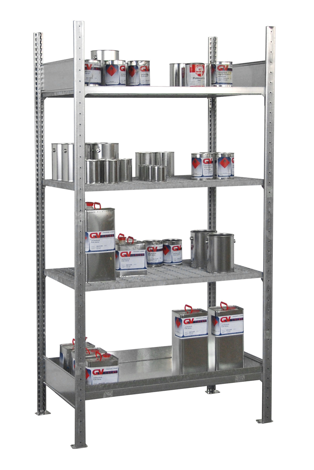- 3022-4E : Grundregal mit 4 Ebenen (4 verzinkte Fachböden, 1 feuerverzinkte Auffangwanne 224 ltr.)