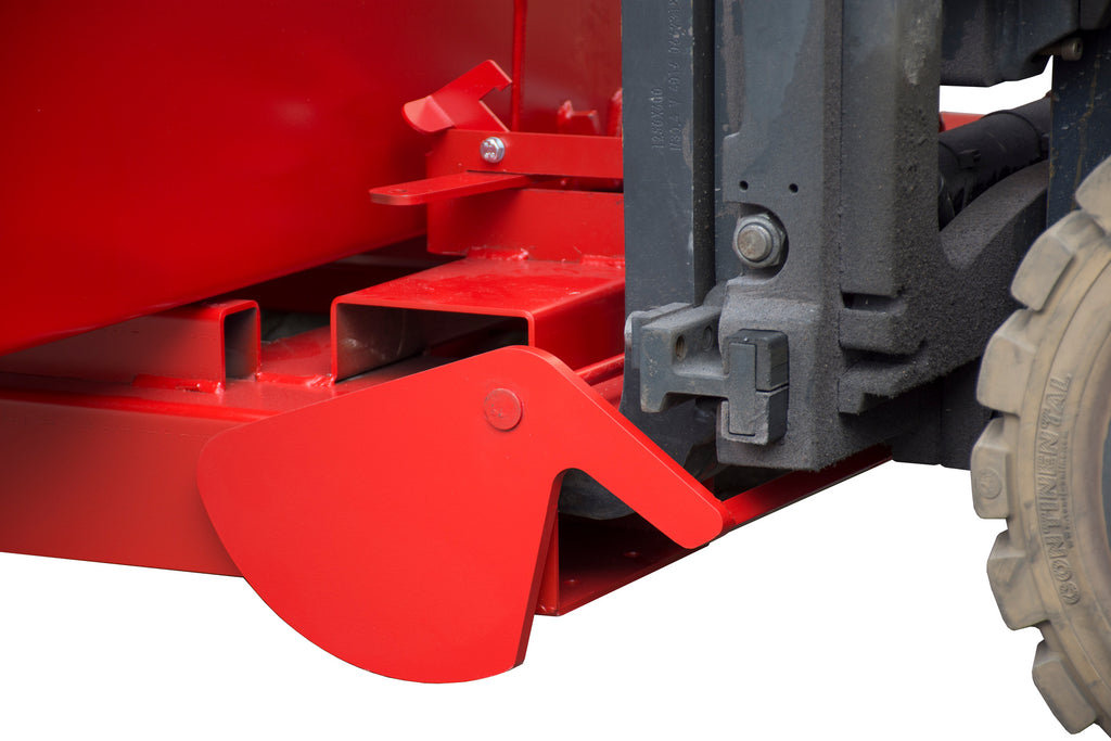 - 3 automatische Entriegelungspunkte zum versetzten Abkippen über dem Container