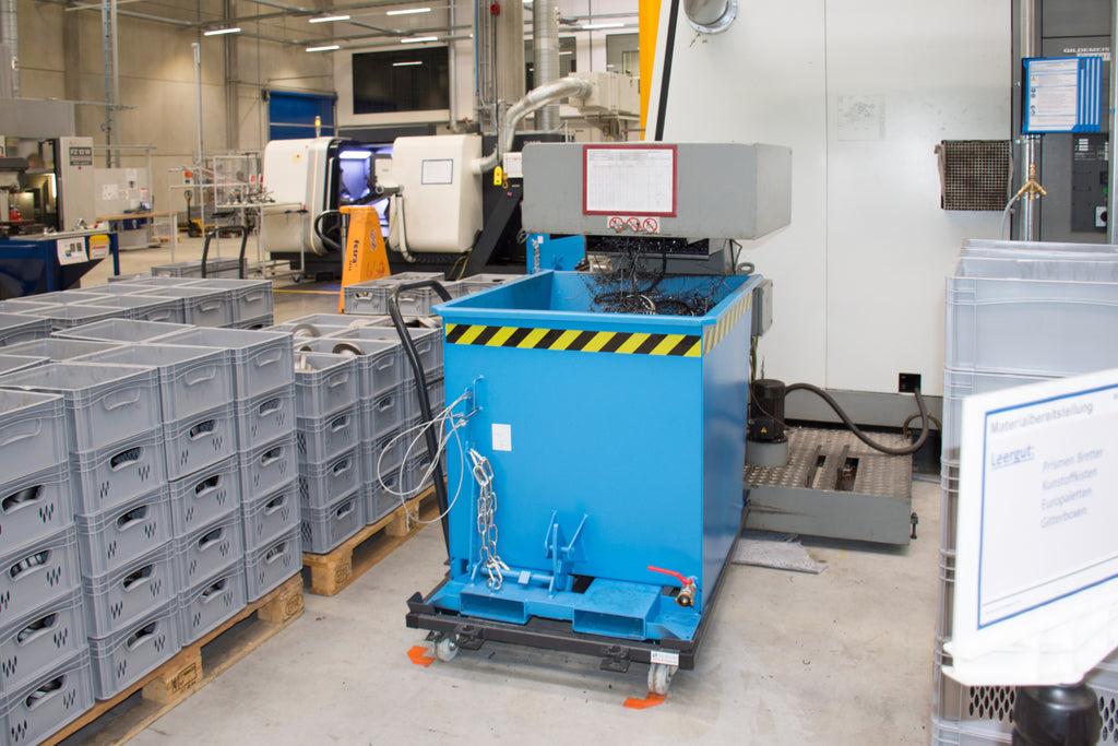 Der Späne-Kippbehälter für Routenzüge – speziell zum Sammeln und Trennen von Flüssigkeiten und Feststoffen